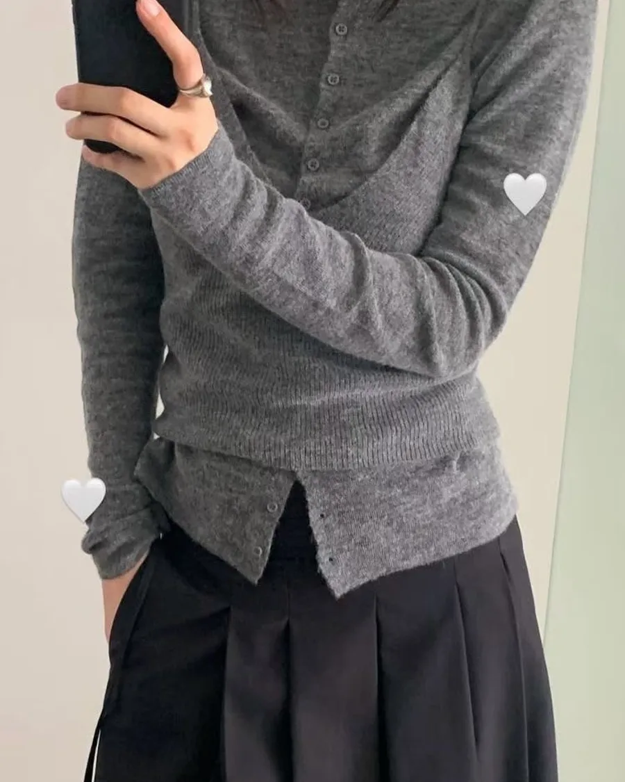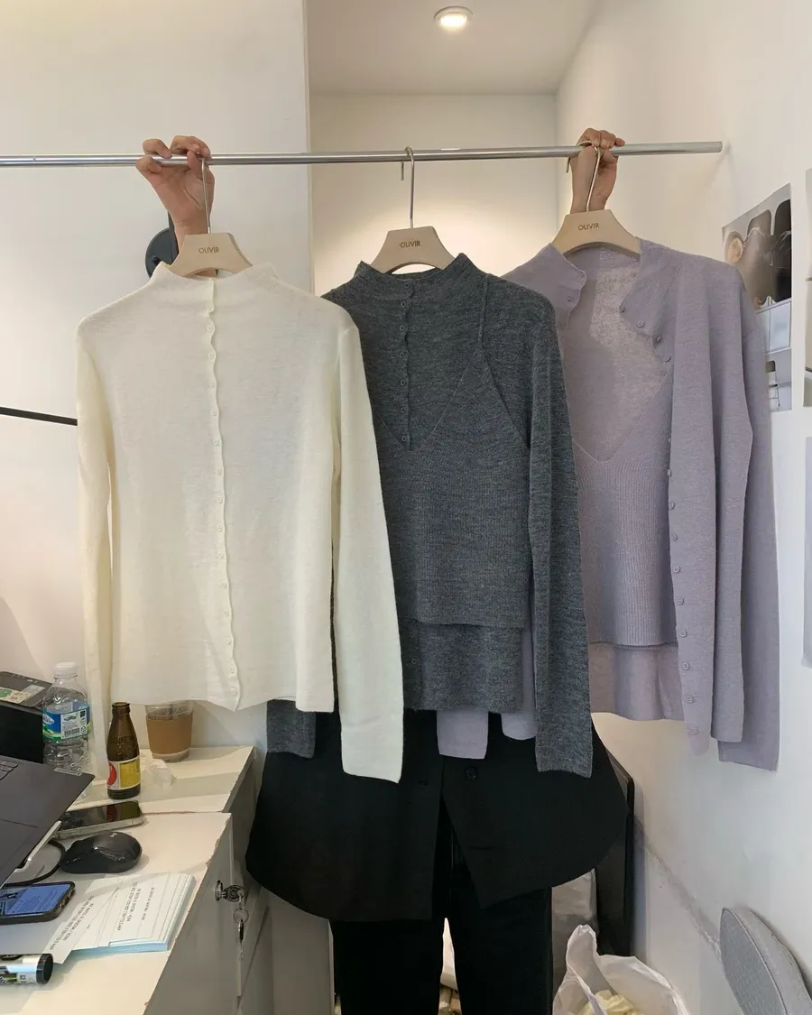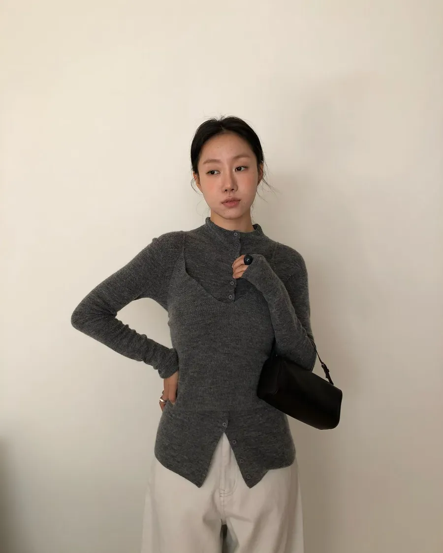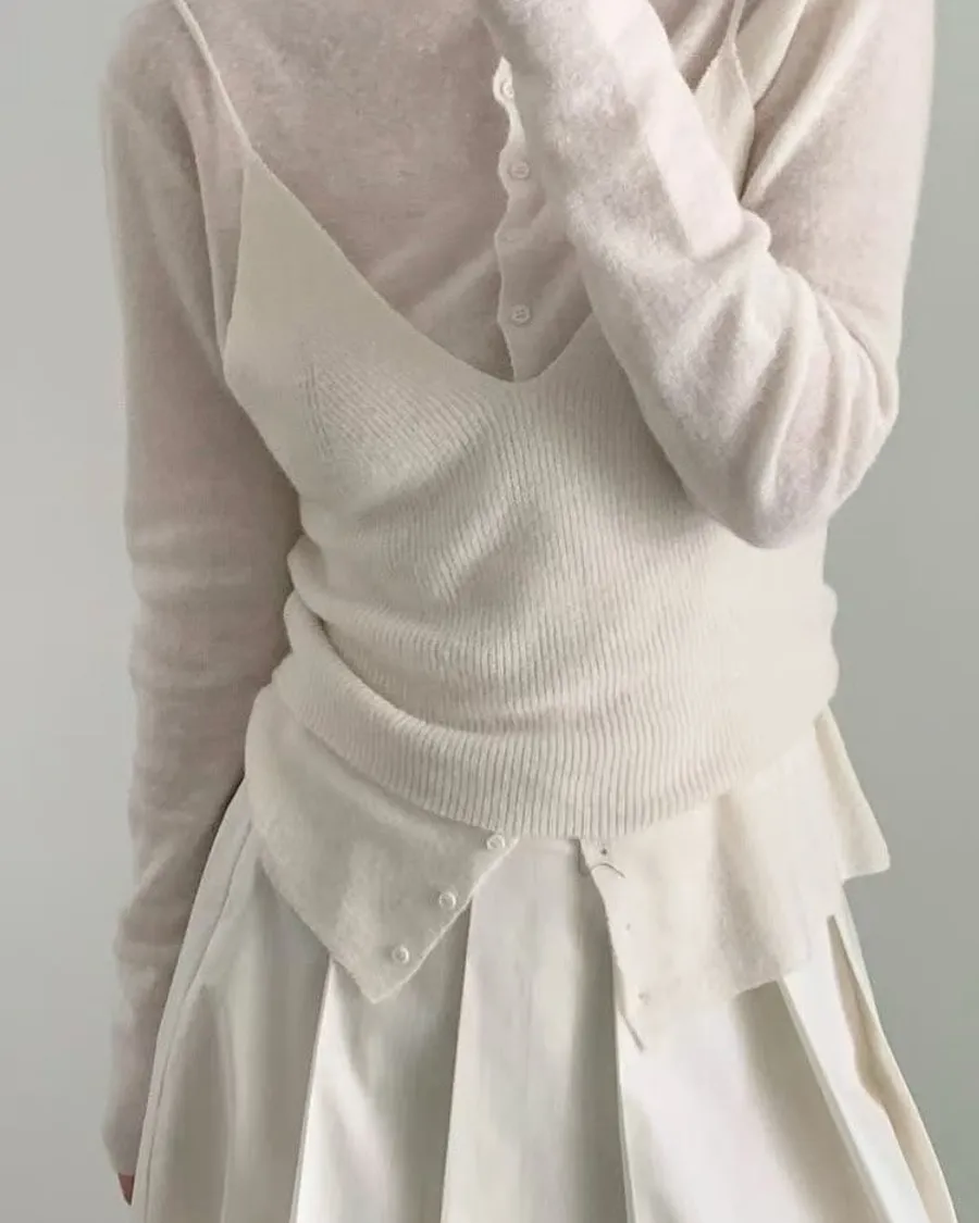 軟萌氣質小姊姊必備排扣針織背心set