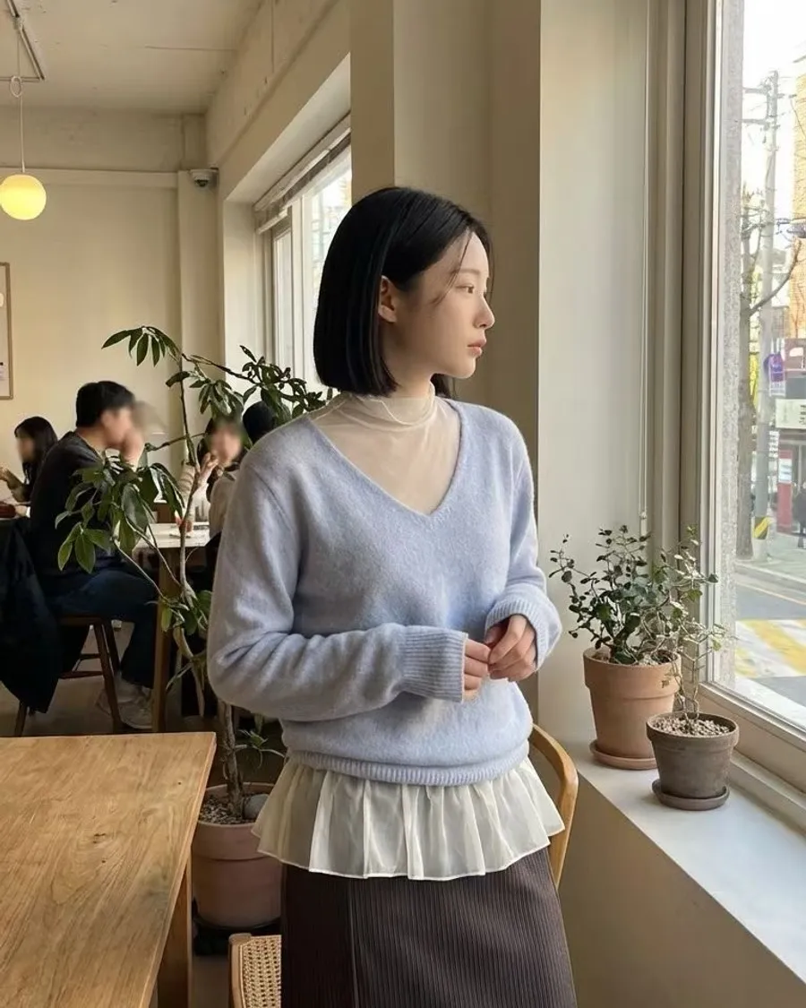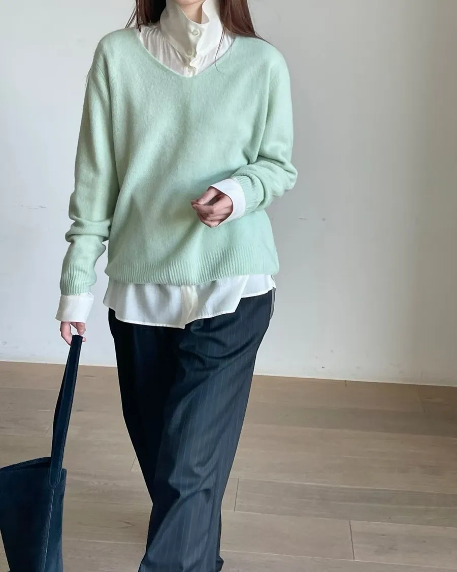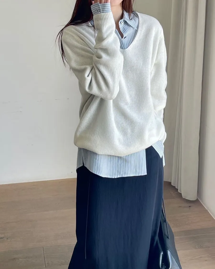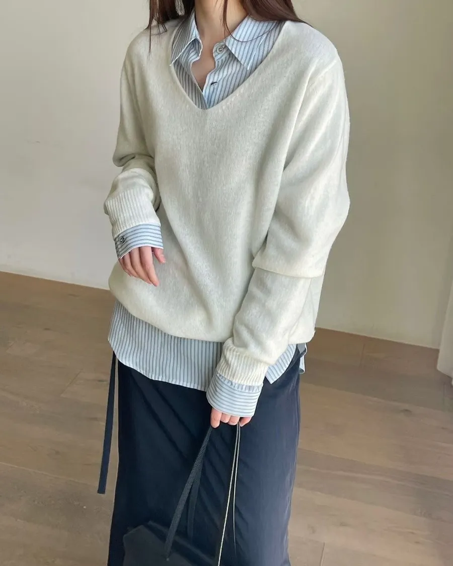 春天少女V領薄針織