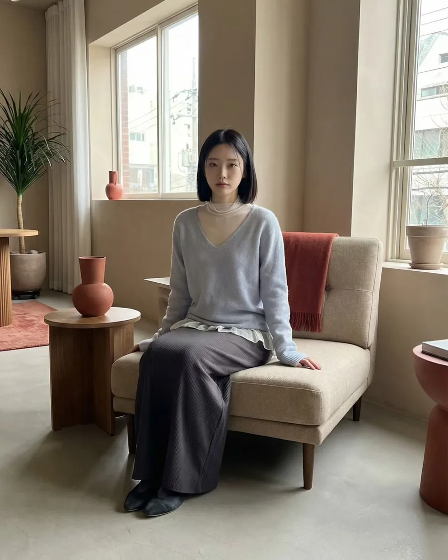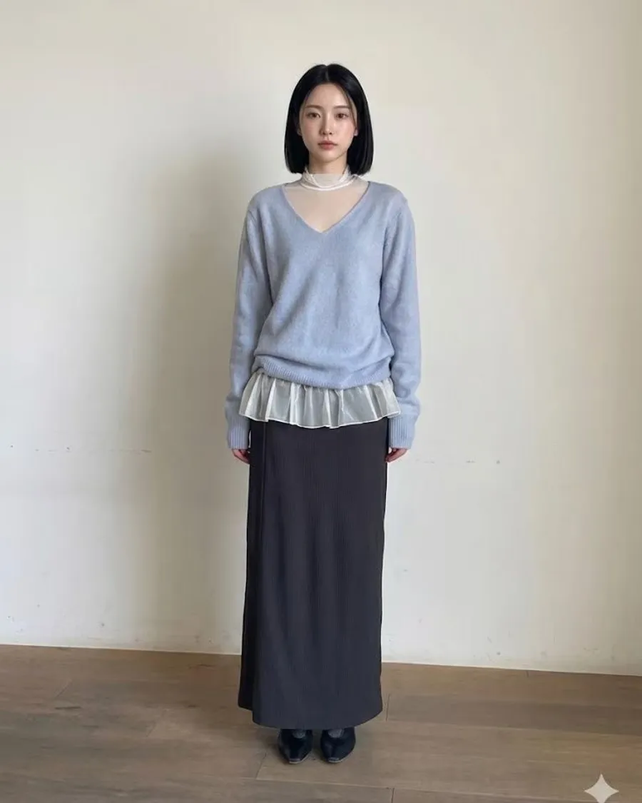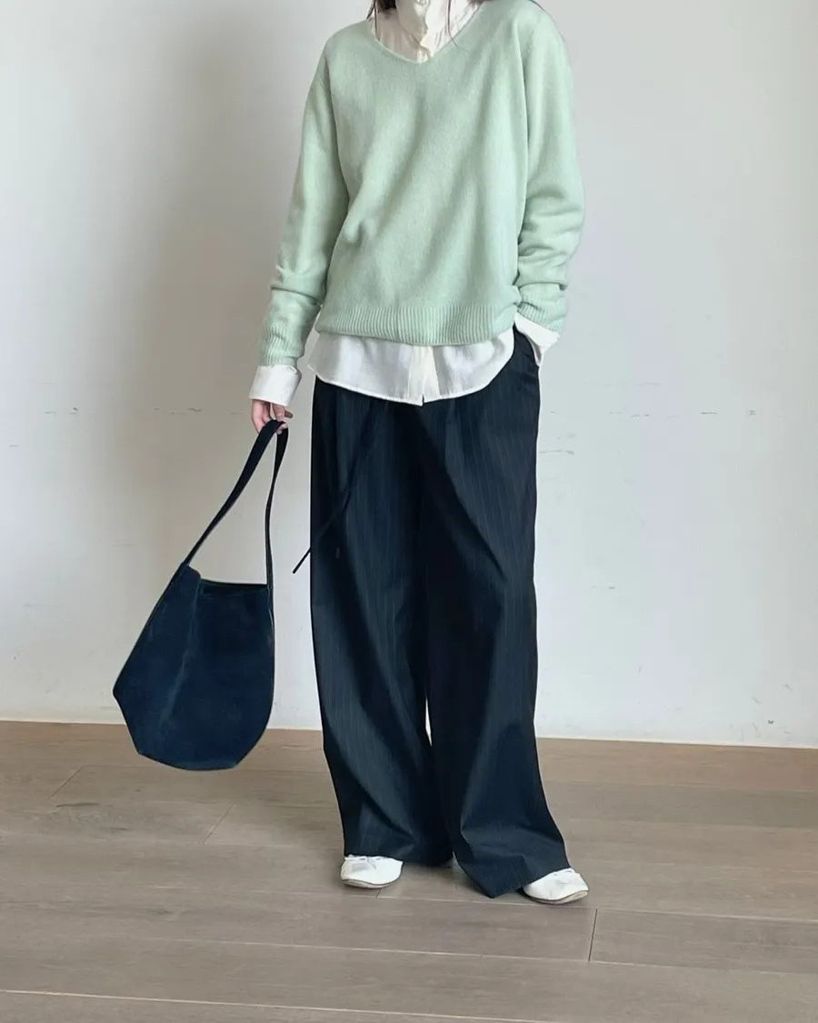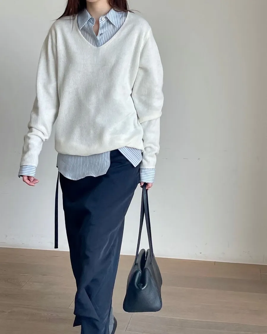 春天少女V領薄針織
